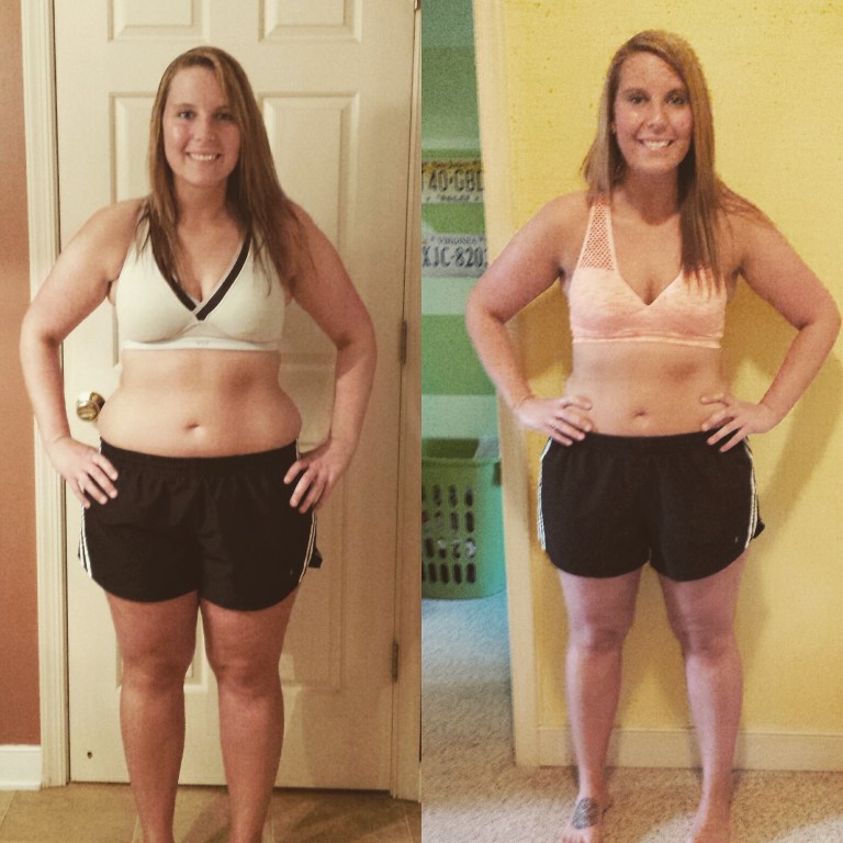 I wanted to feel good when I looked in the mirror, I wanted to feel happy in my own skin, I wanted to wear a smaller size, I wanted to feel good in a bathing suit, I wanted to be able to show the real me- those were all the things I felt on the left when I stood taking my very first before pictures for my very first round of the 21 day fix extreme. Up until that point I had lost a little of the wieght from my start weight from doing insanity, but I still was eating horribly and it showed- I still was not feeling or seeing the results I wanted. Then on the right was me after my very first round of the 21 day fix extreme- and standing there I felt better than I ever had before in my entire adult life. Even though I wasn’t exactly where I wanted to be I had lost a little over 10lbs in 21 days and I was already a pants size down. That day was my turning point, that was the day I knew that what I had dove into was going to be big, and boy was I right.